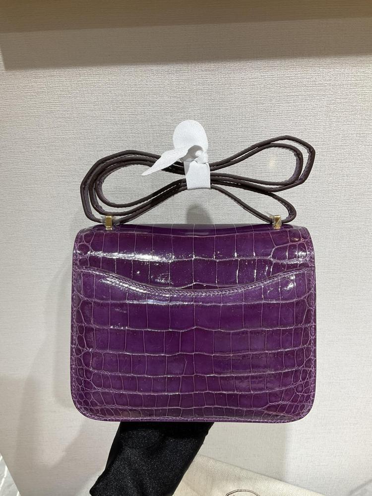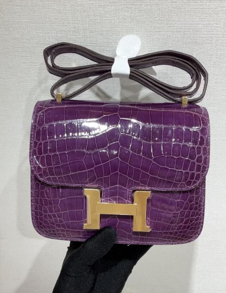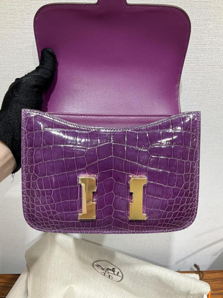 🐊 حقيبة Constance 18cm مصنوعة من جلد Alligator فاخر بسطح لامع يعكس الفخامة والجرأة.