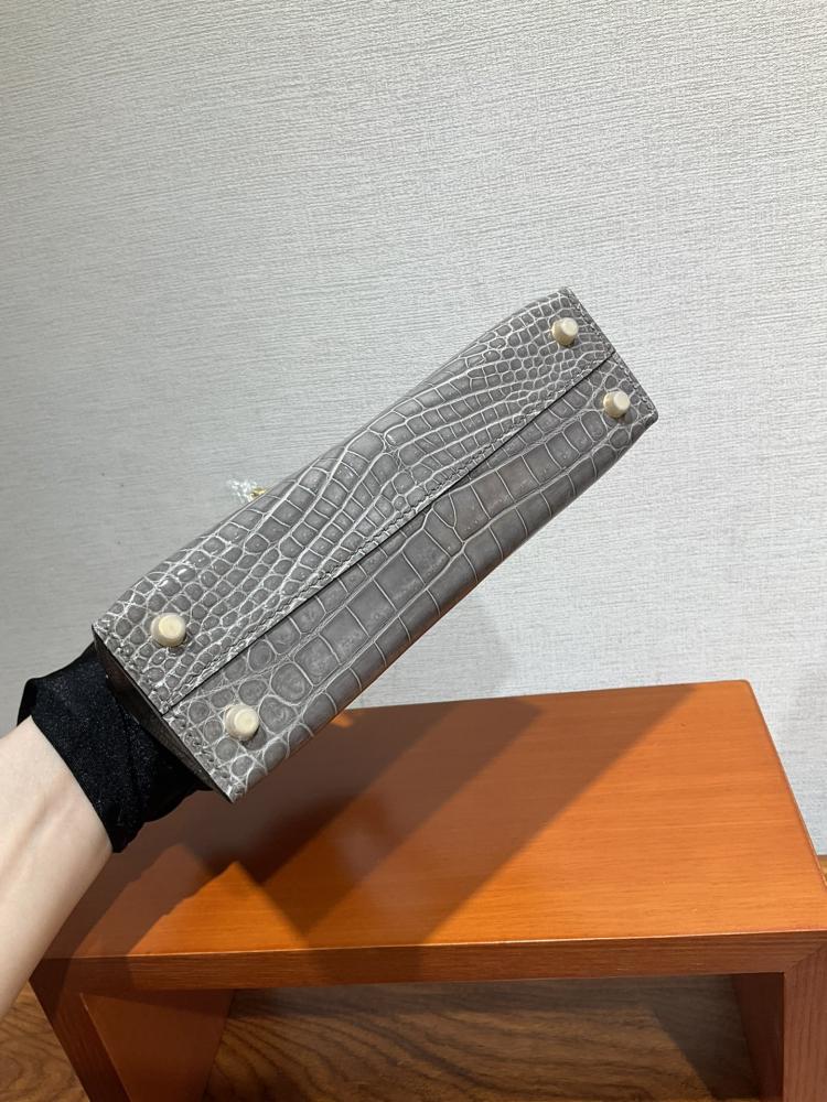 A timeless luxury piece in Glacier Grey glossy crocodile leather 🐊, accented with elegant gold hardware.