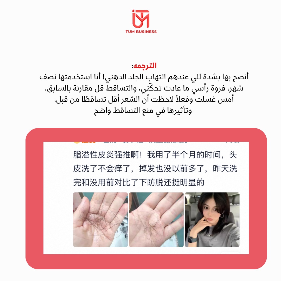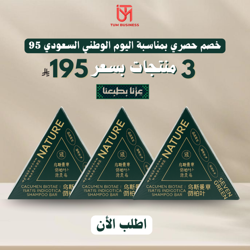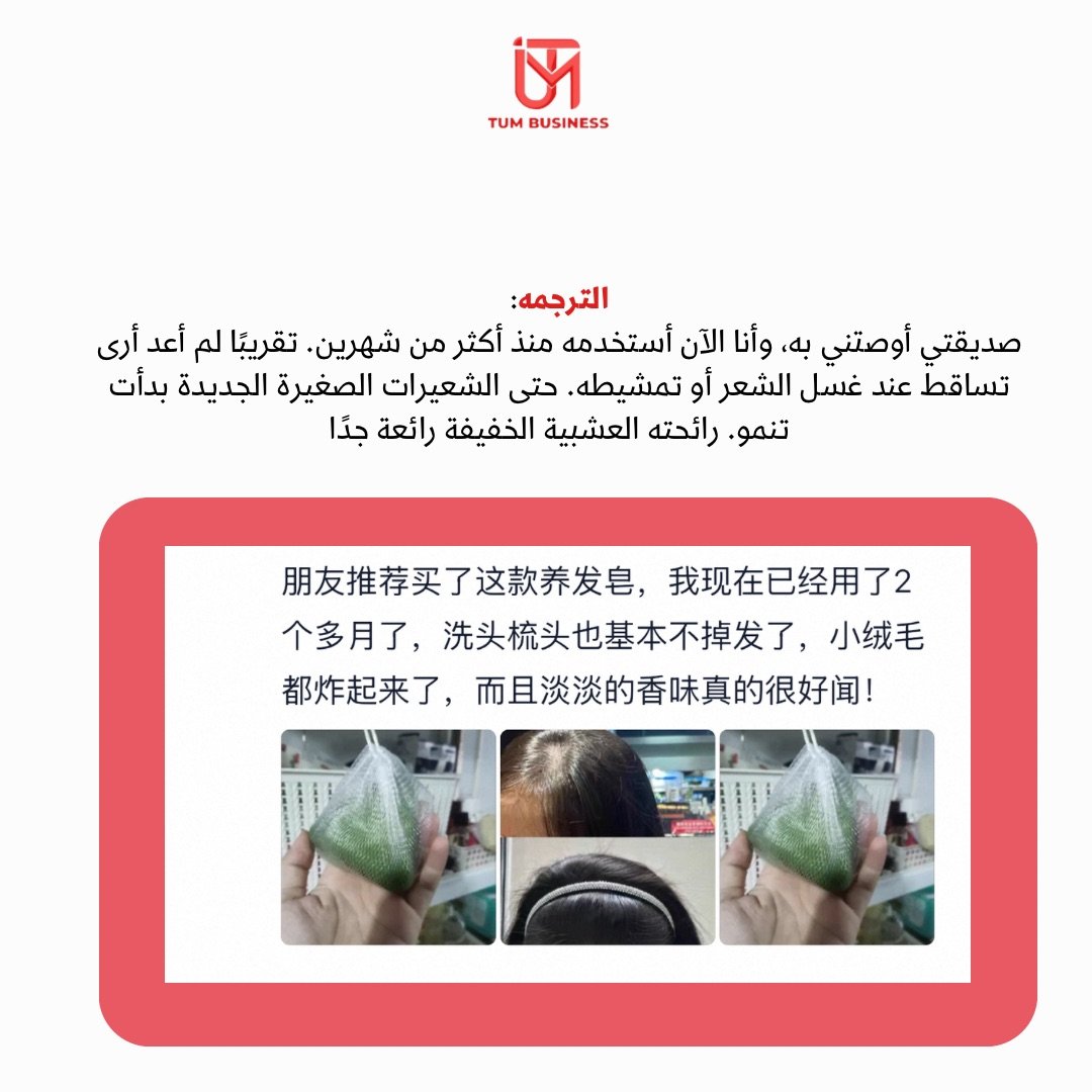 صابون طبيعي مكوَّن من 12 مستخلص عشبي فعّال، أبرزها: زيت شجرة الشاي، الجنسنج، الروزماري، العرقسوس، زيت جوز الهند، وزيت الزيتون. يتميز بتركيبة آمنة على فروة الرأس والجلد، تساعد على: